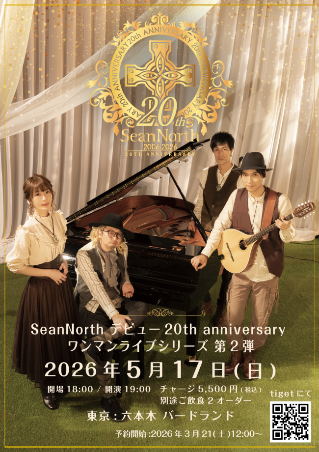 SeanNorthデビュー20th anniversary ワンマンライブシリーズ第2弾 2026年5月17日(日) 六本木バードランド https://www.bird-land.co.jp/ 開場18:00 / 開演…